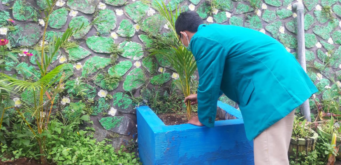 Mahasiswa KSM-Tematik Unisma dan Warga Dusun Membuat Pot Semi Permanen dan Menghias Lingkungan Dusun Durek
